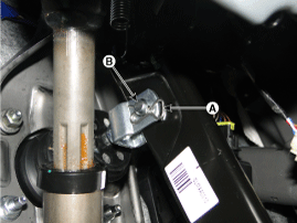 Remove the snap pin (A) and clevis pin (B).