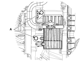 Loosen the vacuum pump bracket bolts (A), and then remove vacuum pump and bracket.