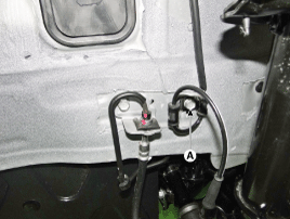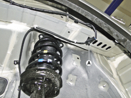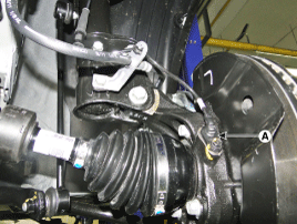 Remove the front wheel speed sensor cable mounting bolt (A).