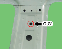 1st seat belt height adjuster lower mounting hole (Ø14.5)