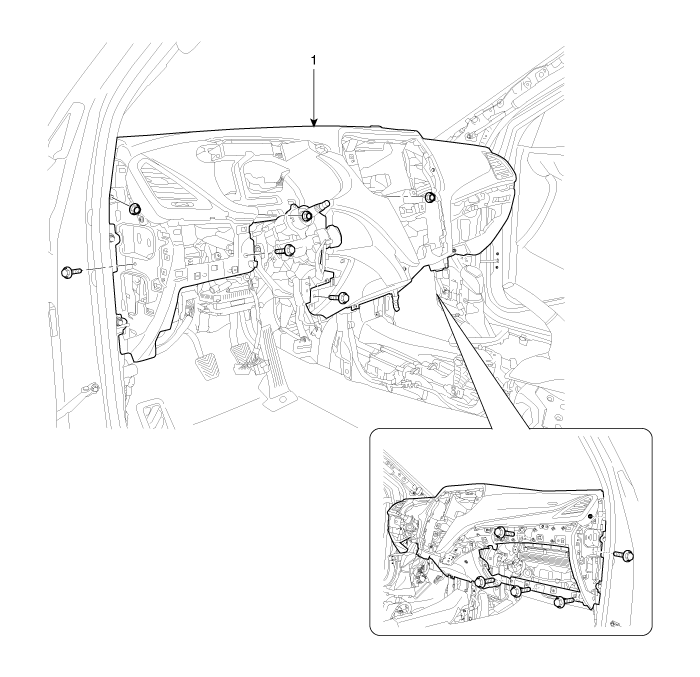 Hyundai Santa Fe: Main Crash Pad Assembly. Components and Components Location - Crash Pad - Body (Interior and Exterior)Hyundai Santa Fe: Main Crash Pad Assembly. Components and Components Location