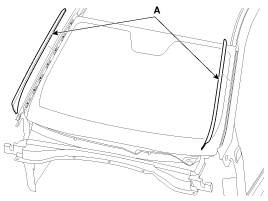 Install the windshield glass side molding (A).
