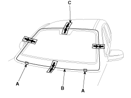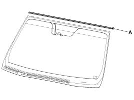Install the windshield glass upper molding (A) and fasteners.