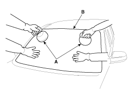 Remove the windshield glass (B) carefully using the glass holder