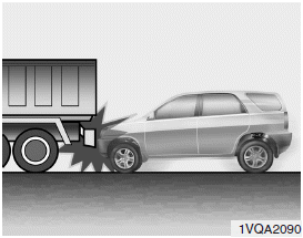 • Just before impact, drivers often brake heavily. Such heavy braking lowers the front portion of the vehicle causing it to “ride” under a vehicle with a higher ground clearance. Air bags may not inflate in this "under-ride" situation because forces that are detected by sensors may be reduced by such “underride” collisions.