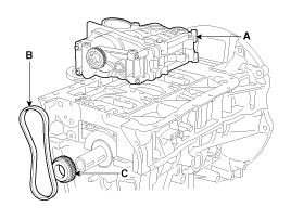 balance shaft chain (B) and the sprocket (C).