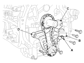 Remove the balance shaft chain guide (D).