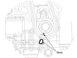 Removal 1. Remove the cylinder head cover. 2. Set No.1 cylinder to TDC/compression. A. Turn the crankshaft pulley and align its groove with the timing mark "T" of the lower timing chain cover. ...