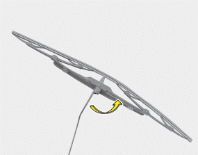 1. Raise the wiper arm and turn the wiper blade assembly to expose the plastic locking clip.