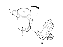 (B) from the fuel tank air filter (C) after rotating it in the direction