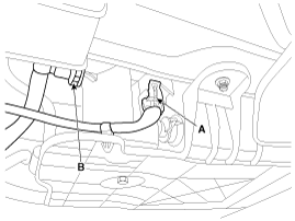 Remove the canister braket (B) installation bolt (A).