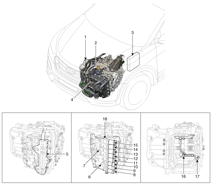Hyundai Santa Fe: Components and Components Location - Automatic Transaxle Control System - Automatic Transaxle SystemHyundai Santa Fe: Components and Components Location
