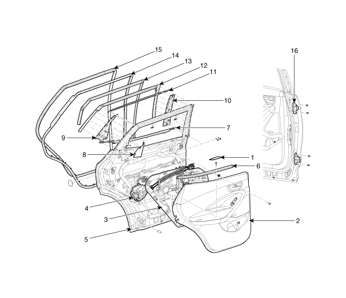 Hyundai Santa Fe: Components and Components Location - Rear Door - Body (Interior and Exterior)Hyundai Santa Fe: Components and Components Location