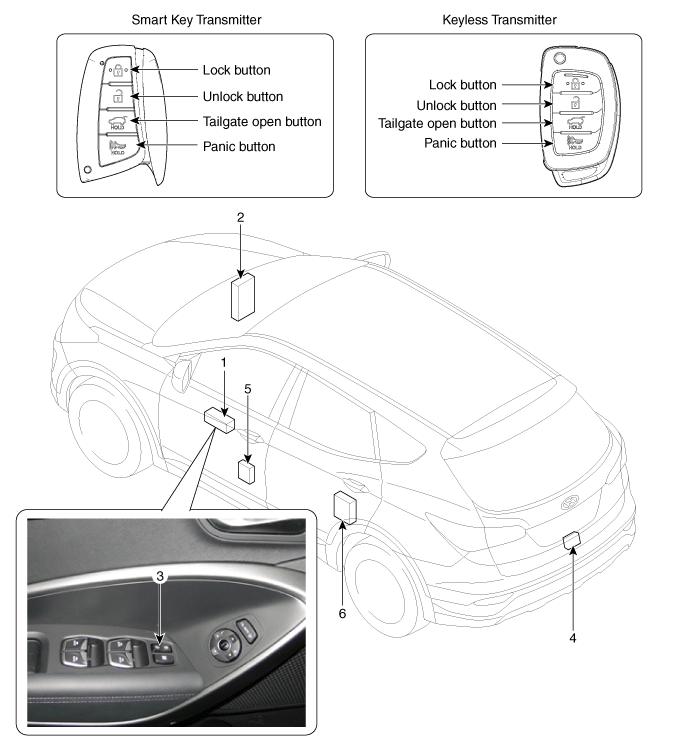 Hyundai Santa Fe: Components and Components Location - Power Door Locks - Body Electrical SystemHyundai Santa Fe: Components and Components Location