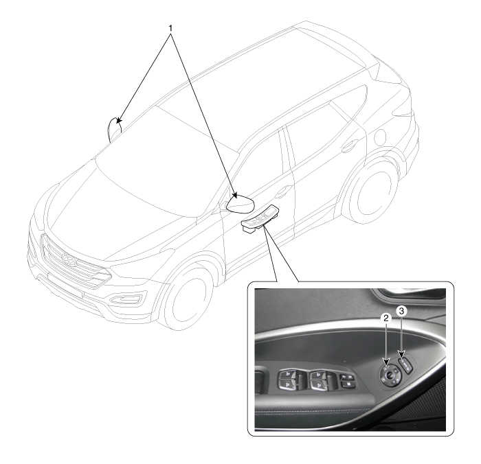 Hyundai Santa Fe: Components and Components Location - Power Door Mirrors - Body Electrical SystemHyundai Santa Fe: Components and Components Location