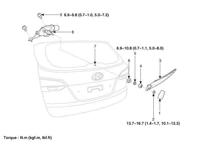 7. Rear wiper motor bolt
