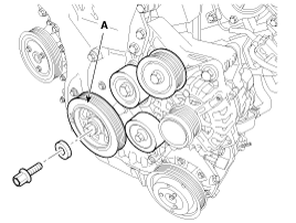 Removal and Installation 1. Remove the drive belt. 2. Remove the drive belt auto tensioner(A). Tightening torque : 53.9 ~ 63.7 N.m (5.5 ~ 6.5 kgf.m, 39.8 ~ 47.0 lb-ft) Tensioner pulley bolt is left-hands ...