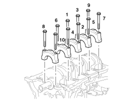 uniformly tighten the 10 bearing cap bolts, in several passes,
