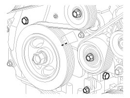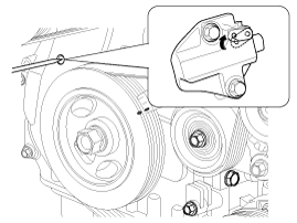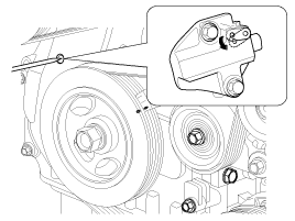 Turn the crankshaft pulley and align its groove with the timing mark "T" of the lower timing chain cover.