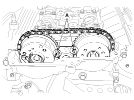Check that the mark(A) of the CVVT sprockets are in straight line on the cylinder head surface as shown in the illustration.