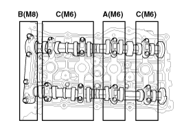 Install the intakeCVVT assembly(A), exhaust CVVT assembly(B) and camshaft(C).