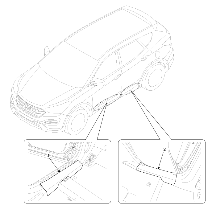Hyundai Santa Fe: Door Scuff Trim. Components and Components Location - Interior Trim - Body (Interior and Exterior)Hyundai Santa Fe: Door Scuff Trim. Components and Components Location