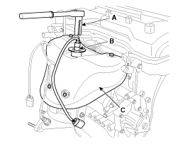 oxygen sensor (B) and the remove the exhaust manifold heat protector