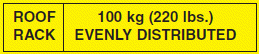 - The following specification is the maximum weight that can be loaded onto the roof rack. Distribute the load as evenly as possible onto the roof rack and secure the load firmly.