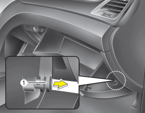 1. Open the glove box and remove the support strap (1).