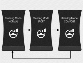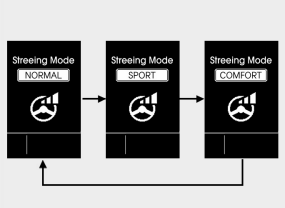 - For your safety, if you press the steering mode button while operating the steering wheel, the LCD display will change, but the steering effort will not change immediately. After operating the steering wheel, the steering effort will change automatically to the selected mode.