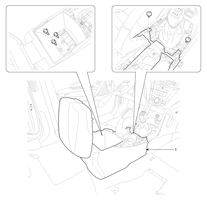 Hyundai Santa Fe: Floor Console Assembly. Components and Components Location - Floor Console - Body (Interior and Exterior)Hyundai Santa Fe: Floor Console Assembly. Components and Components Location