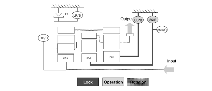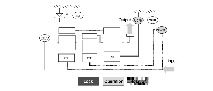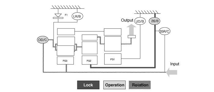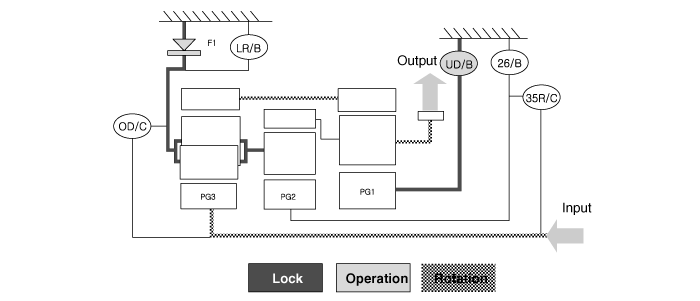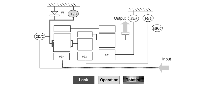 ▶Lower & Reverse Brake (LR/B) Activation → Overdrive (O/D) Hub Lock →