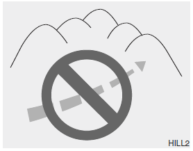 Driving across the contour of steep hills can be extremely dangerous. This danger can come from slight changes in the wheel angle which can destabilize the vehicle or, even if the vehicle is maintaining stability under power, it can lose that stability if the vehicle stops its forward motion. Your vehicle may roll over without warning and without time for you to correct a mistake that could cause serious injury or death.