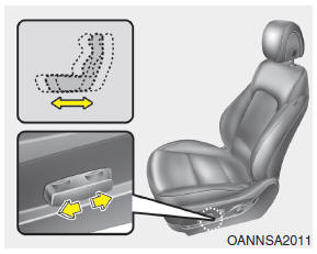 The front seat can be adjusted by using the control knobs located on the outside of the seat cushion. Before driving, adjust the seat to the proper position so as to easily control the steering wheel, ...