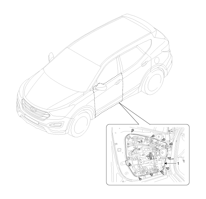 Hyundai Santa Fe: Front Door Module. Components and Components Location - Front Door - Body (Interior and Exterior)Hyundai Santa Fe: Front Door Module. Components and Components Location