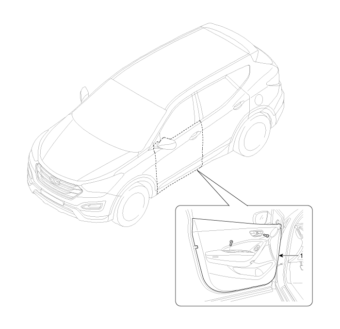 Hyundai Santa Fe: Front Door Trim. Components and Components Location - Front Door - Body (Interior and Exterior)Hyundai Santa Fe: Front Door Trim. Components and Components Location