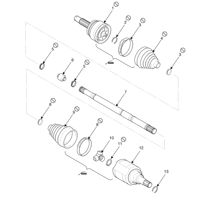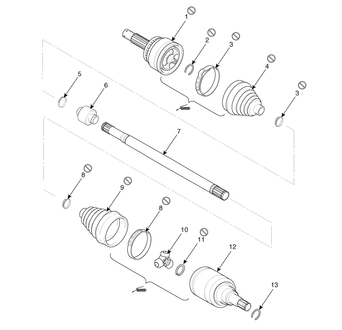 Hyundai Santa Fe: Front Driveshaft. Components and Components Location - Driveshaft Assembly - Driveshaft and axleHyundai Santa Fe: Front Driveshaft. Components and Components Location