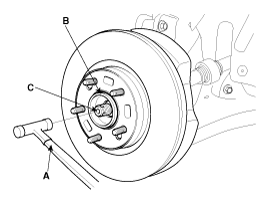 Using a plastic hammer (A), disconnect driveshaft (C) from the