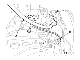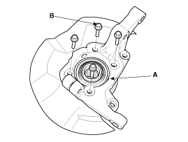 Remove the hub assembly mounting bolts (B) from the knuckle (A).