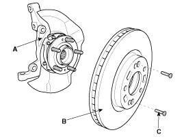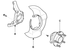 Remove the hub assembly (C) and the dust cover (B) from the knuckle