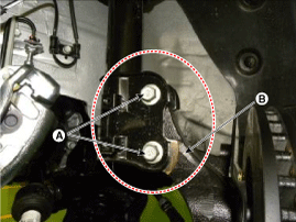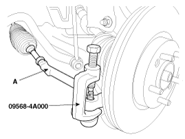 Remove the lower arm (A) mounting bolt and nut from the knuckle.