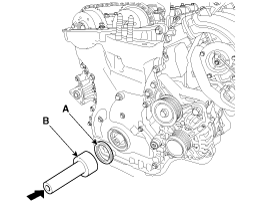 Removal and Installation 1. Remove the drive belt. 2. Remove the passenger engine room side cover. 3. Remove the passenger front tire. 4. Remove the crankshaft damper pulley(A). Tightening torque : 166.6 ...