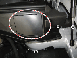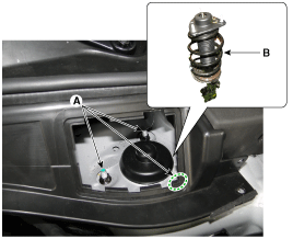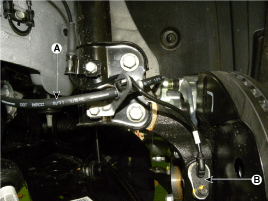 Disconnect the stabilizer link(B) with the front strut assembly(A)