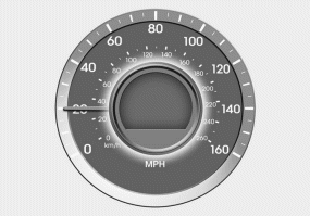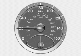 The speedometer indicates the speed of the vehicle and is calibrated in miles per hour (mph) and/or kilometers per hour (km/h).