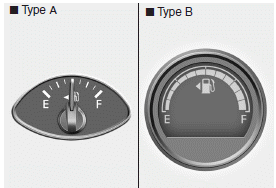 Running out of fuel can expose vehicle occupants to danger. You must stop and obtain additional fuel as soon as possible after the warning light comes on or when the gauge indicator comes close to the “E (Empty)” level.