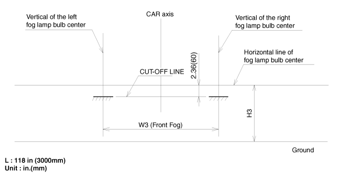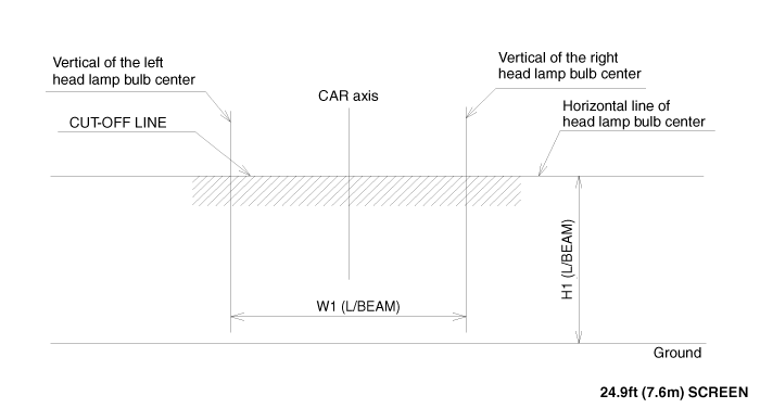 With the head lamp and battery in normal condition, aim the head lamps so the brightest portion falls on the vertical lines.