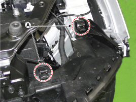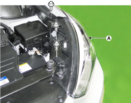Loosen the mounting bolts (3EA) of head lamp. Remove the head lamp assembly (B) after disconnecting the lamp connectors (A).