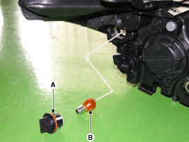 Remove the bulb socket (A) and bulb (B) from the lamp assembly.