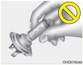 - Always handle them carefully, and avoid scratches and abrasions. If the bulbs are lit, avoid contact with liquids. Never touch the glass with bare hands. Residual oil may cause the bulb to overheat and burst when lit. A bulb should be operated only when installed in a headlamp.