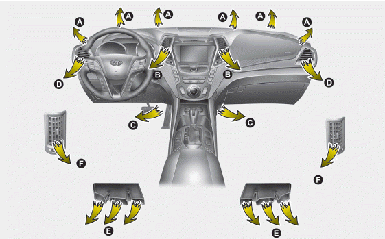 - The air flow of the rear outlet vents (F)is controlled by the front climate control system and delivered through the inside air duct of the floor.